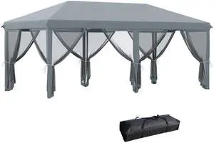 10' x 20' Pop Up Canopy Tent with Netting, Heavy Duty Instant Sun Shelter, Large Tents for Parties with Carry Bag for Outdoor, Garden, Patio, Gray
