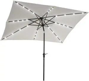 9' x 7' Solar Umbrella, LED Lighted Patio Umbrella for Table or Base with Tilt & Crank, Outdoor Umbrella for Garden, Deck, Backyard, Pool, Beach, White