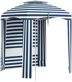 5.9' x 5.9' Portable Beach Umbrella, Ruffled Outdoor Cabana with Walls, Vents, Sandbags, Carry Bag, Blue Stripe