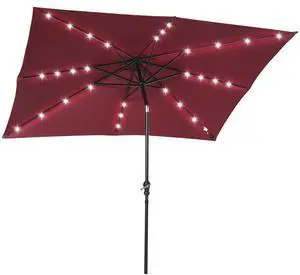 9' x 7' Solar Umbrella, LED Lighted Patio Umbrella for Table or Base with Tilt & Crank, Outdoor Umbrella for Garden, Deck, Backyard, Pool, Beach, Wine Red
