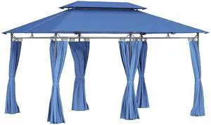 10' x 13' Patio Gazebo, Double Roof Outdoor Gazebo with Curtains and Metal Frame for Garden, Lawn, Backyard and Deck, Dark Blue