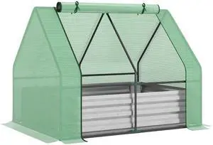 4' x 3' Galvanized Raised Garden Bed with Mini PVC Greenhouse Cover, Outdoor Metal Planter Box with 2 Roll-Up Windows for Growing Flowers, Fruits, Vegetables and Herbs, Clear