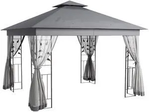 10' x 12' Steel Outdoor Patio Gazebo with Polyester Privacy Curtains, Two-Tier Roof for Air, Large Design