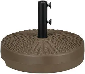 64 lbs. Fillable Umbrella Base with Steel Umbrella Holder, Round Umbrella Stand for 1.5" or 2" Umbrella Poles, Heavy Duty for Outdoor, Lawn, Deck, Poolside, Brown