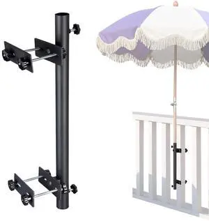 LAGarden Deck Umbrella Mount Holder Bracket Height Flexible for Patio Railing Balcony Courtyard Poolside Mobile Cart Black Corner