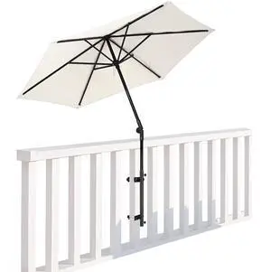 LAGarden Deck Umbrella Mount Holder Bracket Height Flexible for Patio Railing Balcony Courtyard Poolside Mobile Cart Black Corner