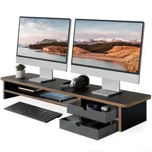 Monitor Stand, Dual Monitor Riser, 42.5inch Large Desk Computer Monitor Stand Riser with Drawer, 2 Tier Wood & Acrylic Desktop Organizer with Cable Management