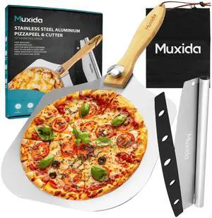Aluminum Pizza Peel & Rocker Cutter Set (12" x 14") Premium Stainless Steel Pizza Paddle with Foldable Wooden Handle, Lightweight Pizza Spatula with Storage Bag for Oven & Outdoor Pizza Maker