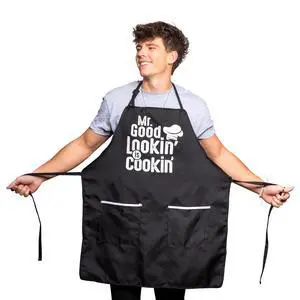 Aprons for Men. Mr Good Looking Black Apron with Pockets. Adjustable Kitchen Apron, Cooking Apron, Grilling BBQ Apron. Funny Apron Mens Gift