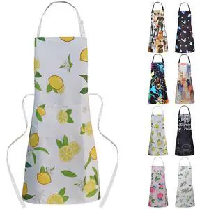 Adjustable Waterproof Kitchen Apron for Women with 2 Pockets, Cute Cooking Chef Apron for Men, Gardening Baking Funny Grill BBQ Aprons Creative Gifts, Floral Apron Yellow