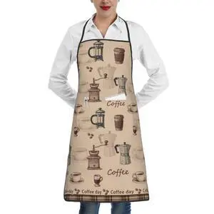 Coffee Themed Cooking Apron for Barista,Vintage Aprons for Women & Coffee Bar Waitress,Waterproof Apron for Cooking Baking BBQ Grilling Gifts
