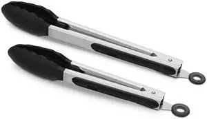 2 Pack Black Kitchen Tongs, Premium Silicone BPA Free Non-Stick Stainless Steel BBQ Cooking Grilling Locking Food Tongs, 9-Inch & 12-Inch