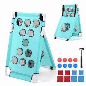 Yescom Portable Cornhole Game Set with 12 Holes Lightweight PVC, 8 Balls & 8 Bean Bags for Pool Lawn Yard Beach