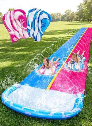 JOYIN 22.5FT Water Slide and 2 Inflatable Boards, Extra Long Heavy Duty Double Lawn Waterslide with Sprinkler for Kids Adults Backyard Summer Water Toy Outdoor Fun, Blue, Pink
