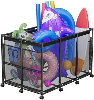 POOLHOUR Pool Float Storage XXL Large Outdoor Pool Toy Storage Organizer for Pool Noodles, Toys, Floats, Balls,Equipment, Mesh Rolling Storage Organizer Bin, Black
