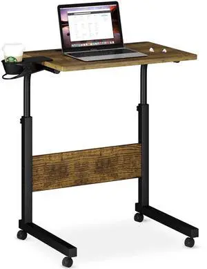 Standing Desk Adjustable Height, Stand Up Desk with Cup Holder, Portable and Easy to Move Bedside Table, Ideal for Home or Office, BlackWalnut