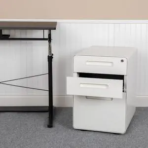 Ergonomic 3-Drawer Mobile Locking Filing Cabinet with Anti-Tilt Mechanism and Hanging Drawer for Legal & Letter Files, White