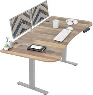 VIVO Light Wood / Black Electric 63" x 47" Corner Standing Desk