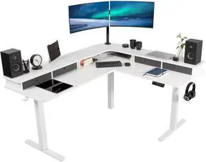 VIVO Black / White Electric 75" x 63" Corner Standing Desk, L-Shaped Workstation