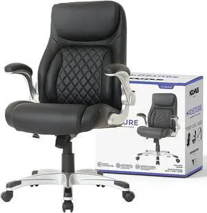 8AM Office Ergonomic Pu Leather Office Chair. Click5 Lumbar Support With Flipadjust Armrests. Modern Executive Chair And Computer Desk Chair (Black)