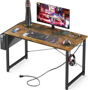 AODK 40 inch Small Computer Desk with Power Outlet for Small Spaces Home Office Student Laptop PC Writing Desks with Storage Bag Headphone Hook, Vintage