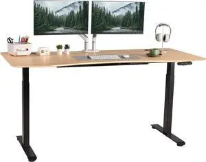 Standing Desk 71 x 32 Inches Dual-Motor Height Adjustable Desk Electric Sit Stand Desk Home Office Desks Whole Piece Desk Board (Natural Maple Desktop/Black Frame)