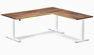 Desky Hardwood L-Shape Sit Stand Desk - Saman / 72 x 30 x 70 x 24 in / White