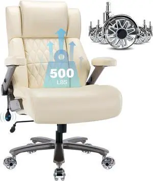 Big and Tall 500lbs Office Chair - Adjustable Lumbar Support 3D Flip Arms Heavy Duty Metal Base&Wheels, High Back Large Executive Computer Desk Chair, Thick Padded Ergonomic Design for Back Pain
