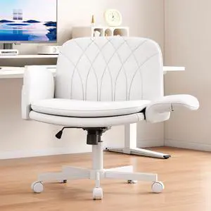 Misolant Fabric Criss Cross Chair with Armrests & Wheels for Cross-Legged Sitting, Comfortable PU Leather Vanity Chair, Office Desk Chairs with Adjustable Rocking Function, for Home, Bedroom White