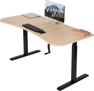 VIVO Light Wood / Black Height Adjustable Stand Up Desk Frame Crank System Workstation (DESK-KIT-1MBC)
