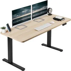 VIVO Electric 63 x 32 Stand Up Desk, Light Wood Table Top, Black Frame
