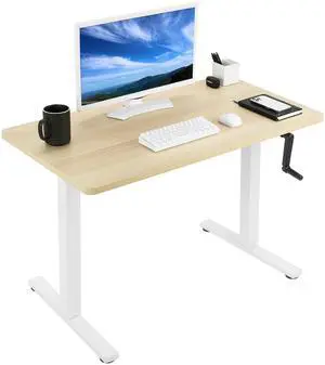 VIVO Manual 43 x 24 Stand Up Desk | Light Wood Table Top, White Frame