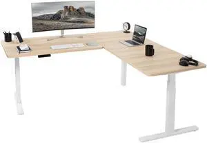 VIVO Electric 77" x 71" Corner Stand Up Desk, Light Wood Table Tops, Black Frame