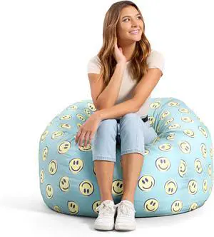Big Joe Fuf Medium Foam Filled Bean Bag Chair with Removable Cover, Smiley Face Plush, Soft Polyester, 3 feet Big