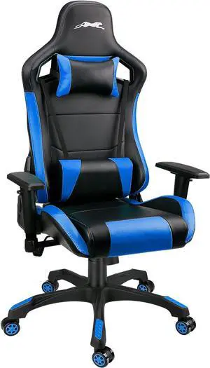 Leopard Gaming Chair, High Back PU Leather Office Chair, Adjustable Video Gaming Chairs, Swivel Racing Chair with Adjustable Armrest (Black/Blue)