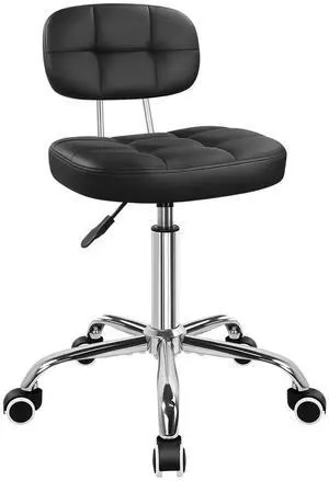 Black Home Office Chair Leather Rolling Stool with Swivel Wheels with Backrest Height Adjustable for Home Office Computer Desk SPA