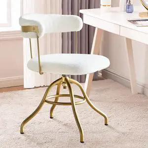 KCC Faux Fur Vanity Makeup Desk Chair, Comfy Fluffy Swivel Modern Leisure Armchair with Wheels, Upholstered Fuzzy Height Adjustable for Teens Women Girls Elegant Home Office