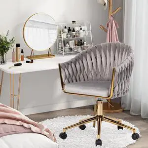 Home Office Chair Velvet Vanity Chairs Makeup Desk Chair with Wheels Mid Back Computer Chairs Height Adjustable Swivel Rolling Task Chair for Living Room, Bedroom, Office
