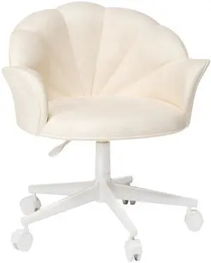 Vanity Chair with Wheels Velvet Petal Desk Chair Upholstered Tufted Home Office Chair for Women Girls, Height Adjustable Makeup Task Chair for Bedroom Living Room