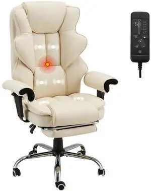 Massage Office Chair with Heating Function & Footrest, 6-Point Vibration, Ergonomic Executive Reclining Desk Chair with Padded Seat for Relaxation, Comfort & Stress Relief