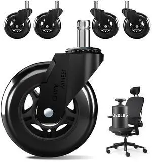 Office Chair Wheels Set of 5 3 Inch Roller Blade Wheels Office Chairs, Office Chair casters Desk & Gaming Chair Quiet for Carpet, Hardwood & Wood Floors - Not for IKEA