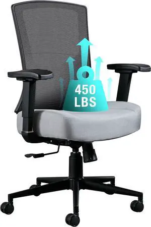 Big and Tall Office Chair 450lbs, Ergonomic High Back Computer Desk Chair for Heavy People with 2D Adjustable Waist Support and Heavy Duty Metal Base Mesh Chair,Grey