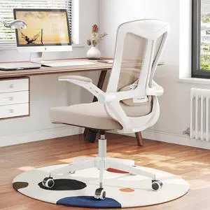 Criss Cross Chair No Wheels Wide Cross Legged Office Desk Vanity Chair Comfy Fabric Armless Adjustable Swivel for Home Computer Task (Beige)