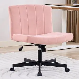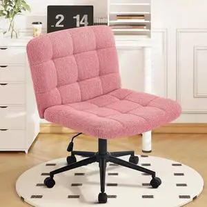 LukkDys Criss Cross Chair with Wheels, Wide Cross Legged Desk Chair, Comfy Fabric Vanity Chair for Home Office Bedroom, Adjustable Armless Swivel Task Chair with 90115° Tilt, Pink