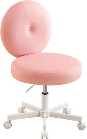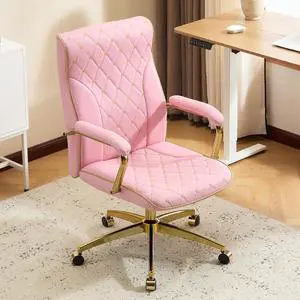 Velvet Home Office, Upholstered Adjustable Swivel desk chair with Gold Base, Tufted Study with Comfy High Back for Teens Study Makeup Pink