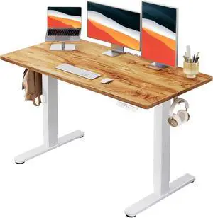 HUANUO Electric Standing Desk, Whole Piece Desktop, Adjustable Height Computer Desk, 4 Height Memory Settings, Sit Stand Up Desk for Home Office, 48" x 24", Light Vintage