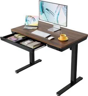 HUANUO Electric Standing Desk with Drawers, 40 x 24 Inch Electric Adjustable Height Desk, Quick Install One-Piece Tabletop with USB Charging Ports, Sit to Stand Up Desk for Home Office, Black Walnut