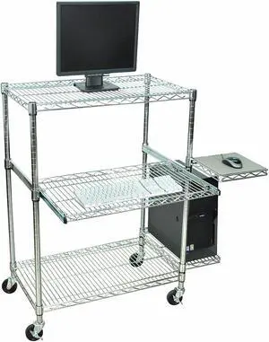 Mount-It! Mobile Standing Gaming Desk With Monitor Arm | Silver