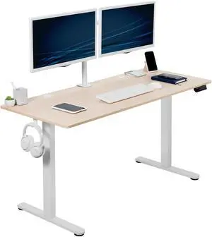 VIVO Electric 55" x 24" Sit Stand Desk, Light Wood Table Top, White Frame