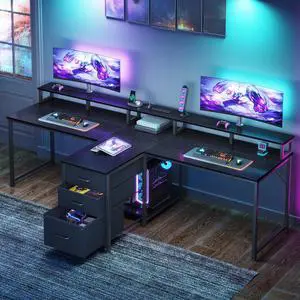 DIXSG L-Shaped Gaming Computer Desk ,62.2 Gaming Table inch PC Writing Study Desk with Movable Monitor Stands for Home Office, Black